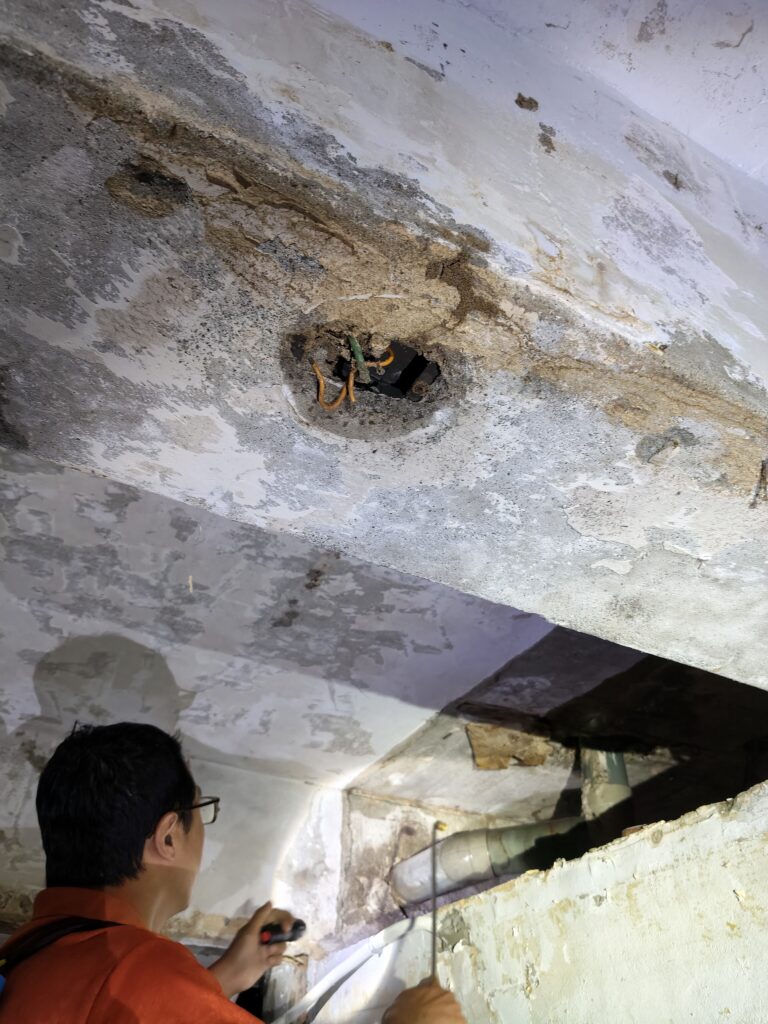 工班師傅的建議後,業主立即與我們聯繫並詳細說明了室內出現白蟻的狀況,同時提出希望我們能前往現場進行勘查的請求。根據業主的需求我們迅速安排了現場勘查工作。在實地檢查過程中我們發現白蟻不僅已經對室內形成了破壞性影響甚至入侵到了電線孔,並且侵害的範圍較為廣泛。如果不儘快加以處理,不僅會嚴重影響到後續裝修工程的進度,也可能導致更大的損失。